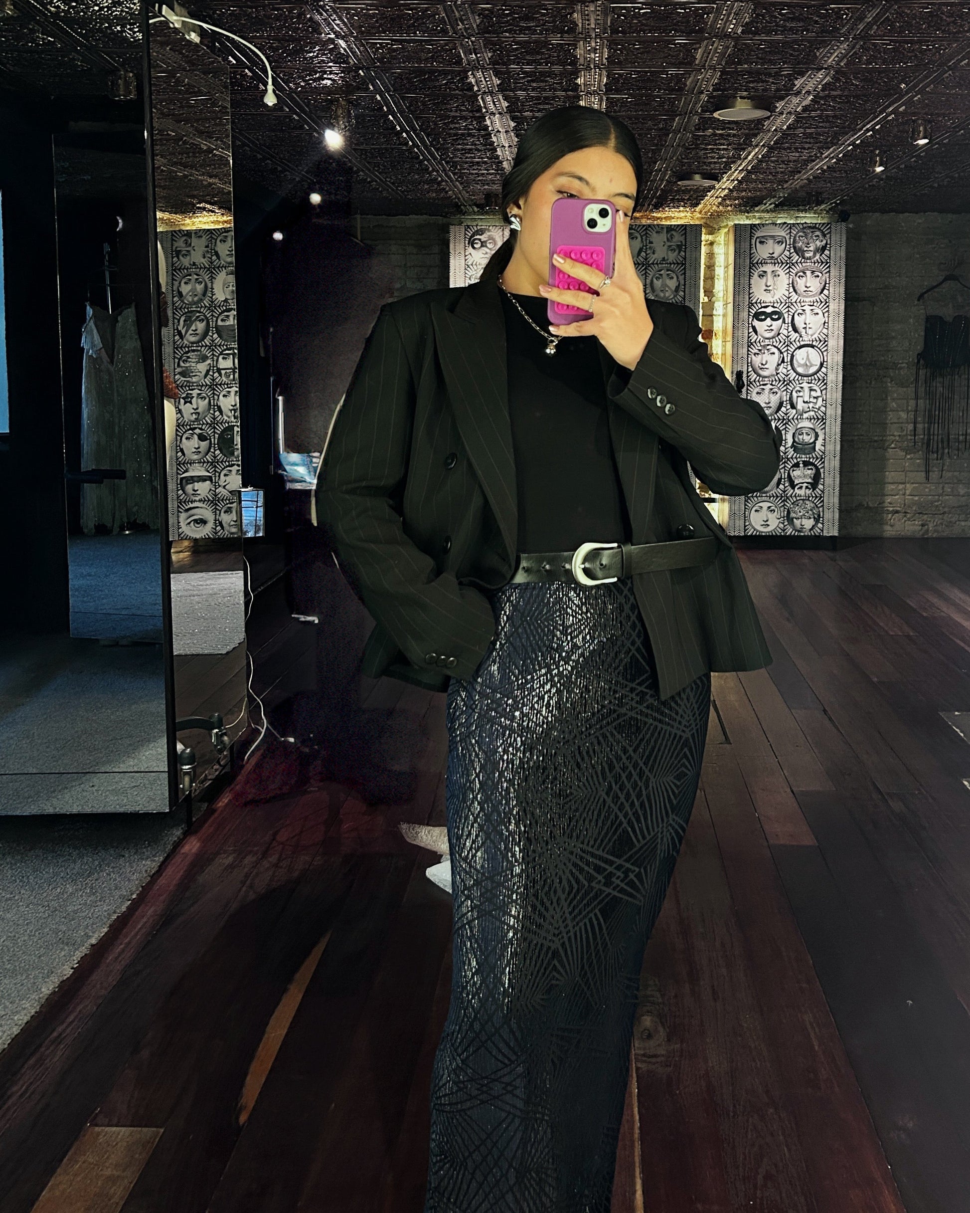 Falda confeccionada en velvet suave, con un diseño texturizado que le da un acabado elegante y diferente. Tiene una silueta recta y una caída fluida que se adapta fácilmente al cuerpo. Es una pieza cómoda, versátil y fácil de combinar, perfecta para usar tanto de día como de noche.